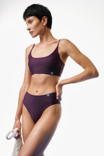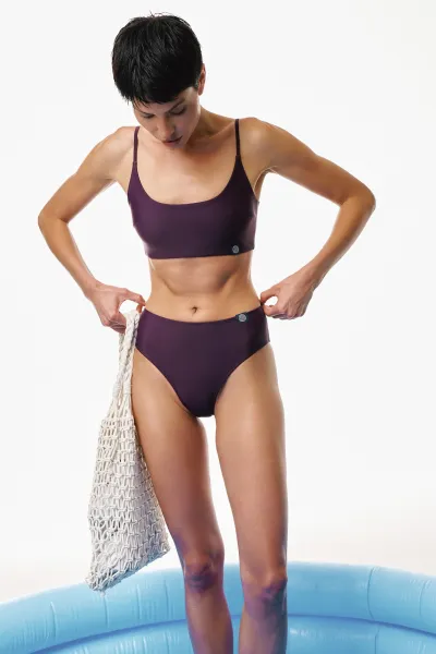 Трусики Lia в сливовом цвете — это идеальное сочетание стиля, комфорта и функциональности. Благодаря высокой посадке они подчеркивают талию и визуально вытягивают силуэт, а лаконичный минималистичный крой делает модель универсальной — как для пляжа, так и для водного спорта.