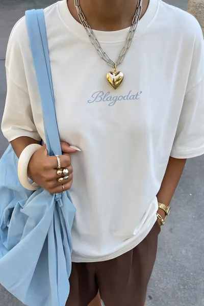 Oversize футболка из хлопка с принтом "Благодать"на груди для тех, кто хочет чаще возвращаться к этому чувству:)