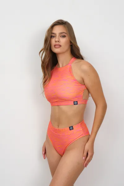 Спортивный топ Jaws Tiger — идеальный выбор для активных водных видов спорта. Принт паттерна тигра придает яркость и дерзость образу. Модель обеспечивает поддержку и свободу движений благодаря открытой спине и мягкой посадке. Перекрёстные эластичные бретели надёжно фиксируют топ даже при интенсивной активности. Изготовлен из итальянского бифлекса Carvico — быстросохнущего, устойчивого к солнцу и соли материала. Плотный, приятный к телу и долговечный. Идеально подходит для серфинга, сап-сёрфинга, фридайвинга, кайтбординга и пляжных тренировок. Создан для движения, выносливости и внутренней свободы.