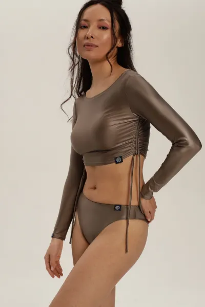 Трусики Chia Praline от JOYS BRAND — классическая модель с высокой линией бедра и средней посадкой. Тёплый оттенок пралине подчёркивает загар и гармонирует с топами из коллекции бренда. Изготовлены из итальянского бифлекса Carvico, устойчивого к выцветанию, соли и хлору. Быстро сохнут и сохраняют форму после интенсивных тренировок. Идеальны для серфинга, сап-сёрфинга, пляжных видов спорта, каякинга и фридайвинга. Chia Praline — сочетание стиля и функциональности от JOYS BRAND.